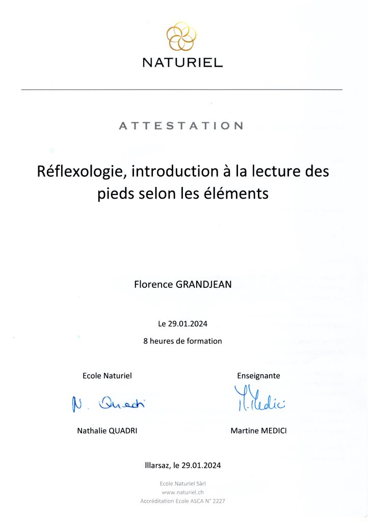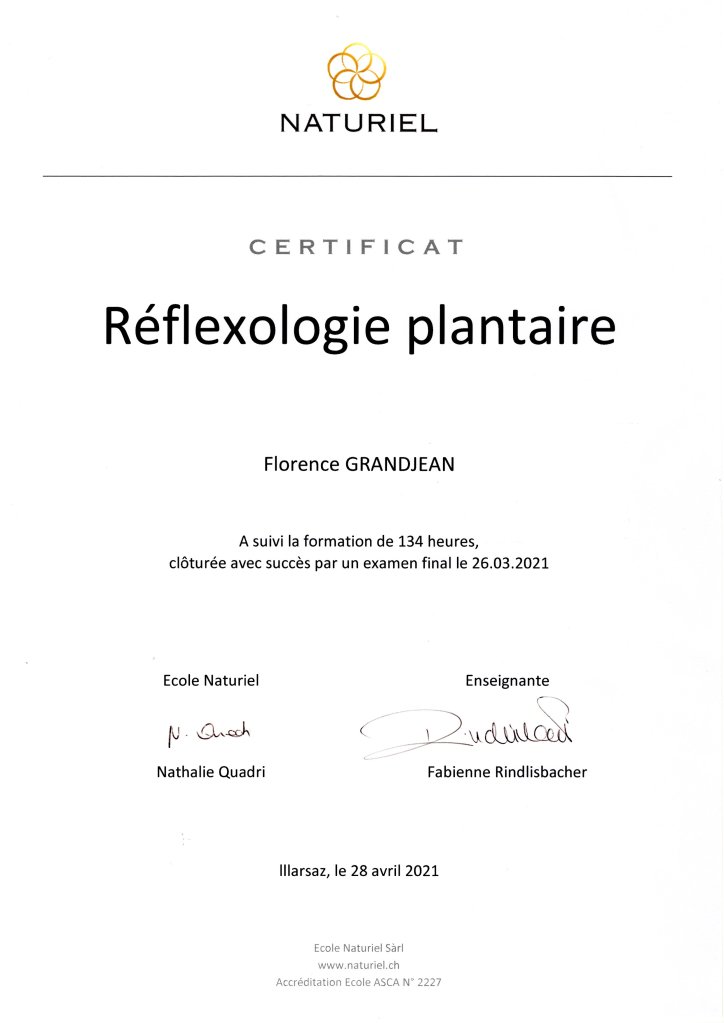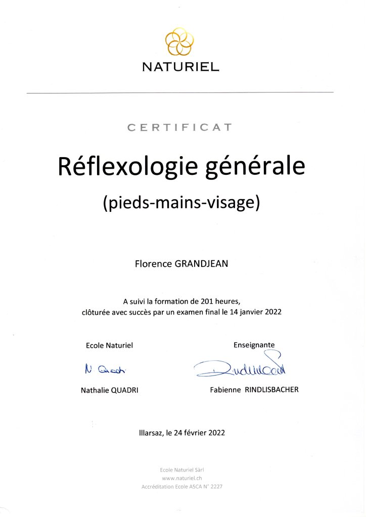 Ecole Naturiel - 2022 Réflexologie générale – Reconnue ASCA